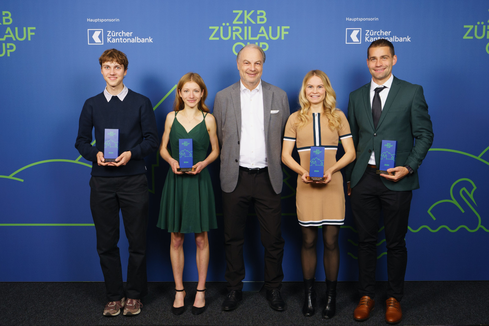 Messmer Linus (Junioren), Anina Hirzel (Juniorinnen), Roger Liebi (Mitglied Bankpräsidium Zürcher Kantonalbank), Janice Studler (Gesamtcupsiegerin), T-Roy Brown (Gesamtcupsieger)