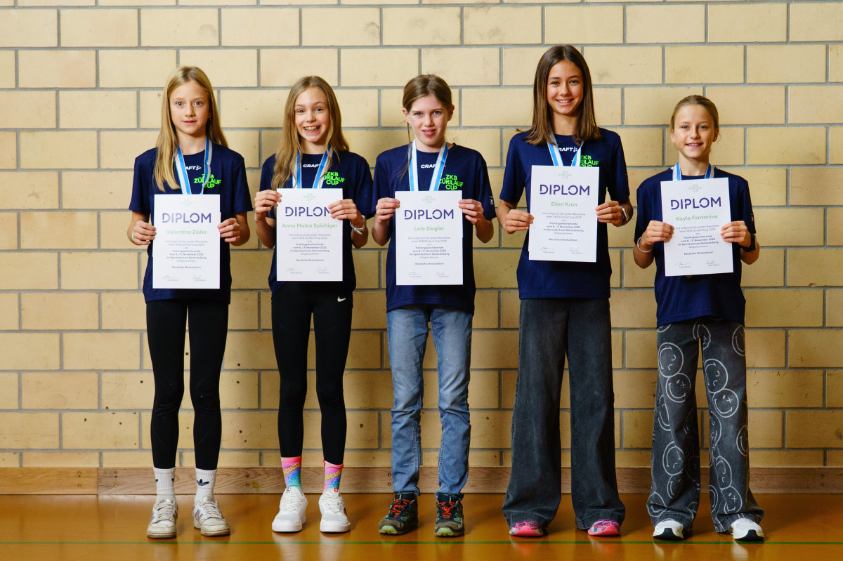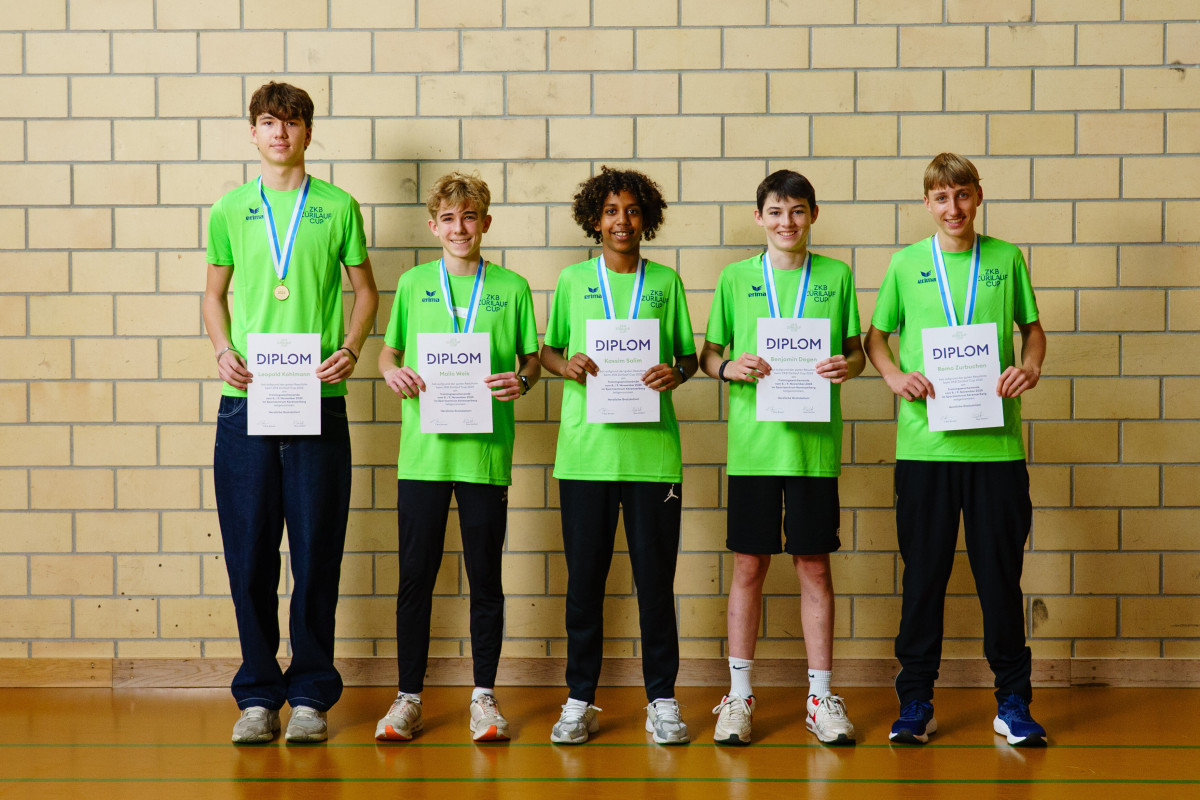 Jonas Krügel (Junioren), Anina Hirzel (Juniorinnen), Roger Liebi (Mitglied Bankpräsidium Zürcher Kantonalbank), Janice Studler (Gesamtcupsiegerin), Eric Riungu Muthomi (Gesamtcupsieger)